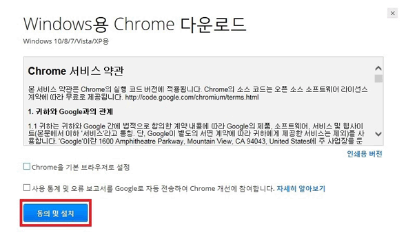 아래 화면을 참고하시고 [동의 및 설치] 버튼을 클릭!