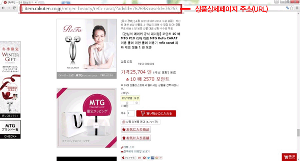 원하시는 상품이 발견되면 아래 상품상세페이지주소(URL)를 복사한 다음, 구매대행을 신청합니다.